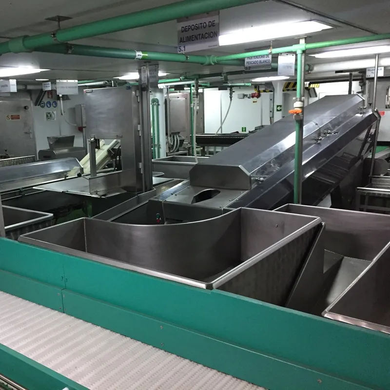Diseñamos e instalamos líneas de procesado integrales, conocidas como «parques de pesca», optimizando el flujo de trabajo, desde la recepción de la materia prima hasta el empaquetado final. Integramos diferentes equipos para crear un sistema eficiente y cohesionado.