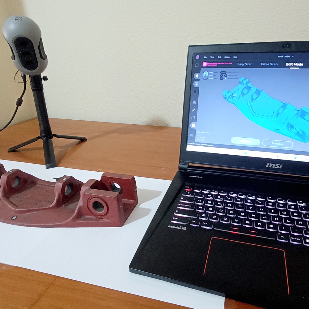 Además, disponemos de un escáner 3D capaz de digitalizar piezas incompletas o deterioradas, incluso cuando faltan secciones y a partir de las zonas conservadas, reconstruimos digitalmente la geometría original y generamos un modelo 3D funcional.